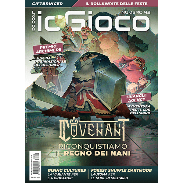 ioGioco 42 arriva nel periodo più ludico dell’anno, per accompagnarvi in questi giorni di festa con una valanga di notizie, interviste, approfondimenti, contenuti giocabili e recensioni dei grandi titoli del momento. Come Covenant, l’ultimo giocone di Devir a cui abbiamo dedicato la copertina di questo ultimo numero dell’anno.